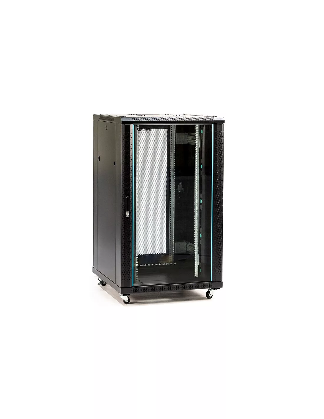 Observaciones: Entrada de cableado en parte superior e inferior. Perfiles de rack numerados y desplazables en profundidad. Incluye 4 ruedas y 4 pies de nivelación, un juego de llaves y un kit de tornillería. |